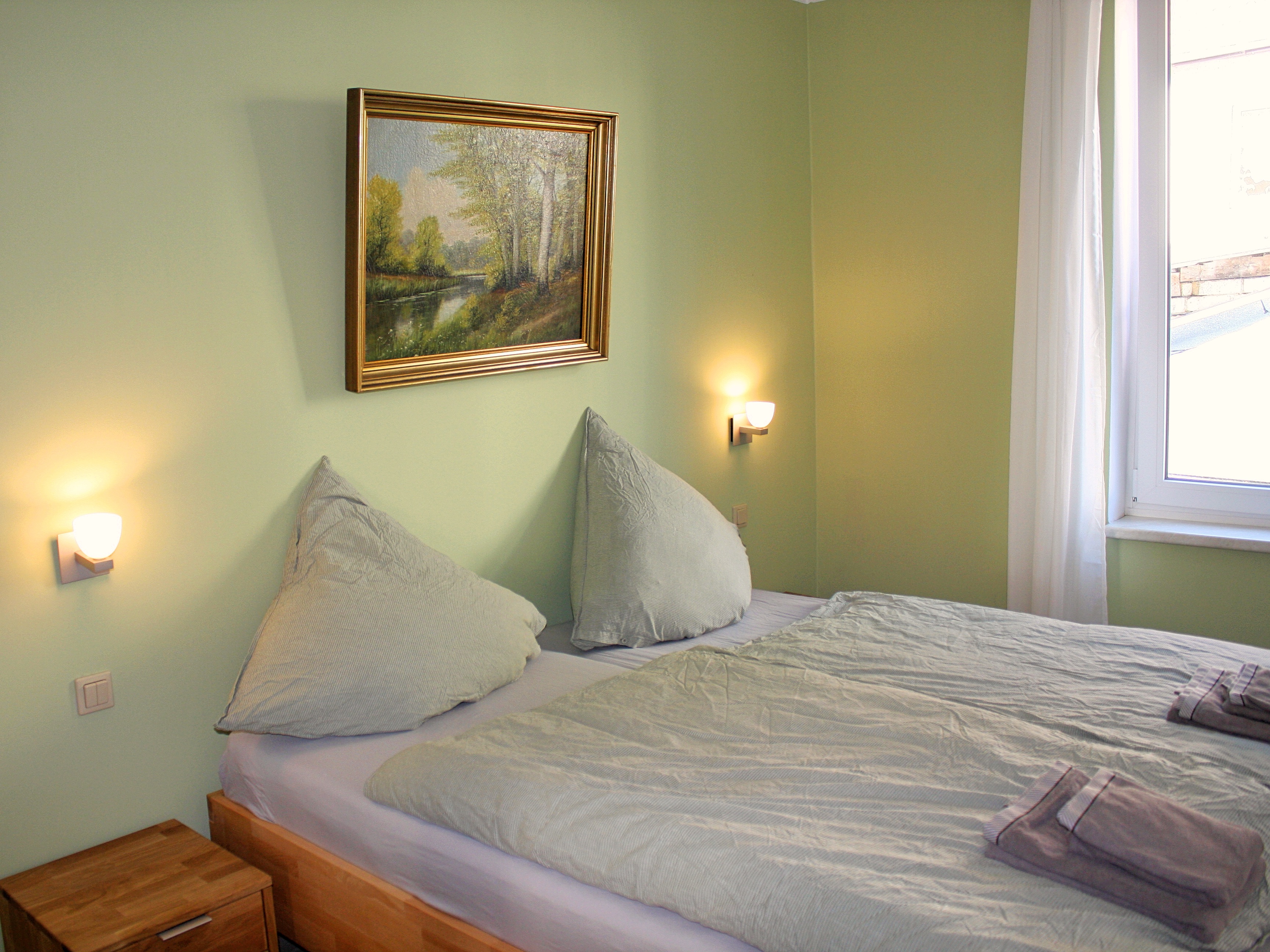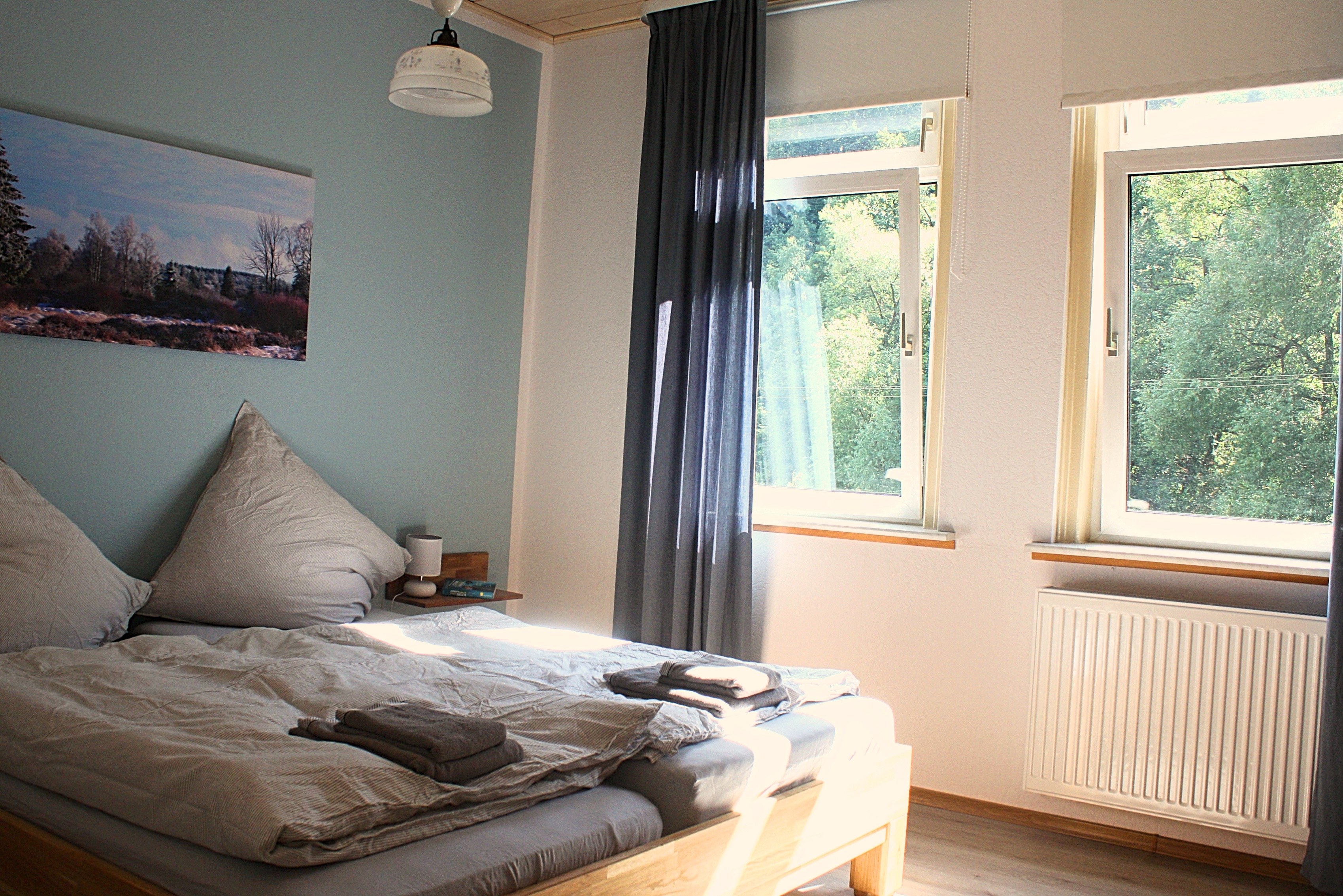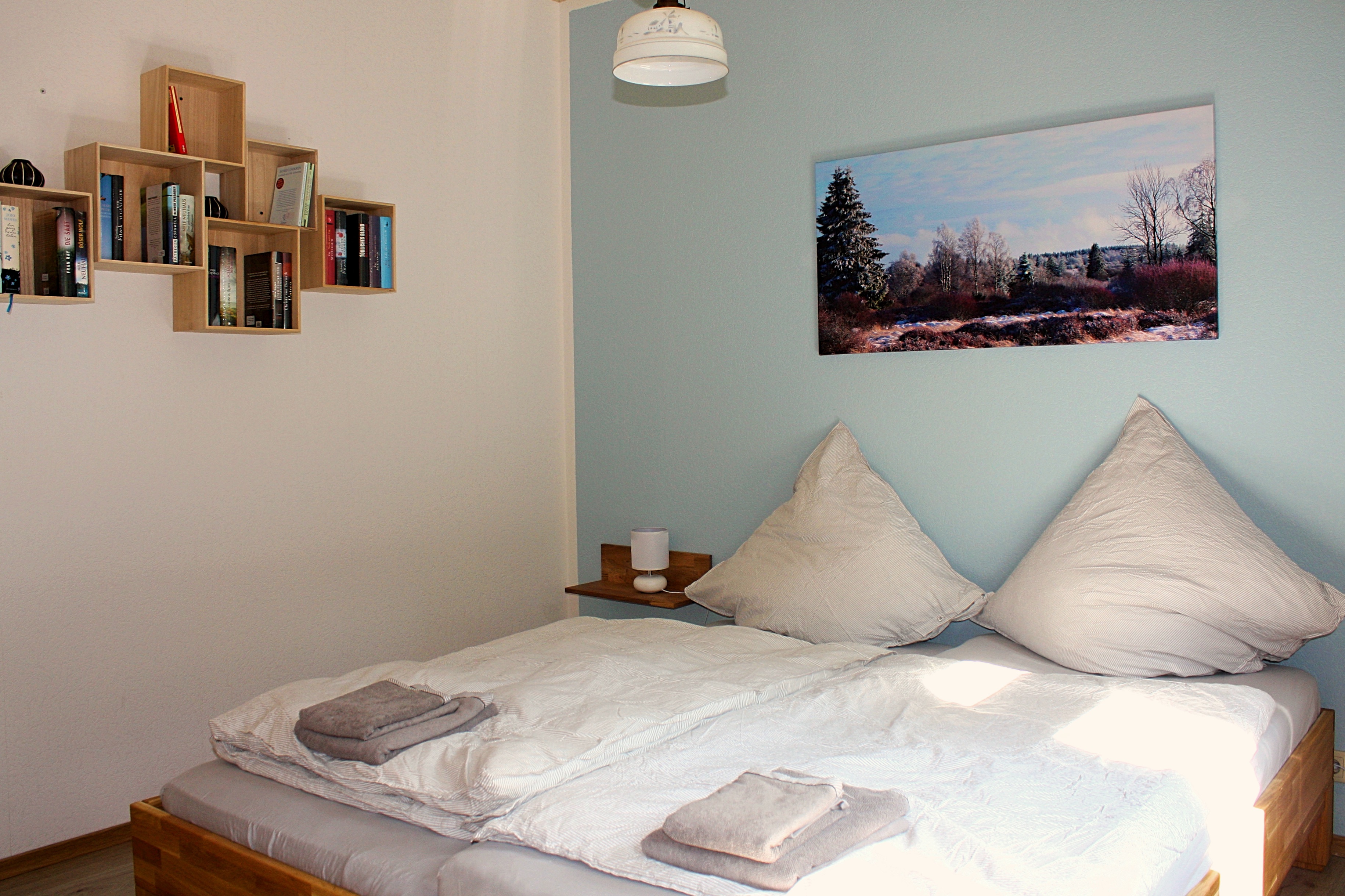 Das Schlafzimmer im Erdgeschoss bietet Platz für zwei Personen und ist mit seinem direkten Zugang zum großzügigen Badezimmer ein echter Wohlfühlort.