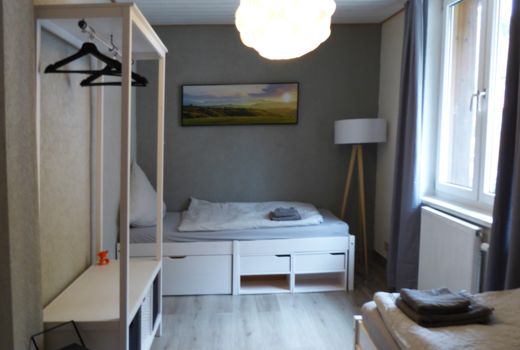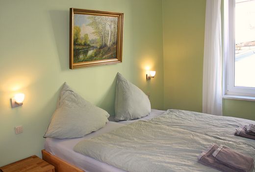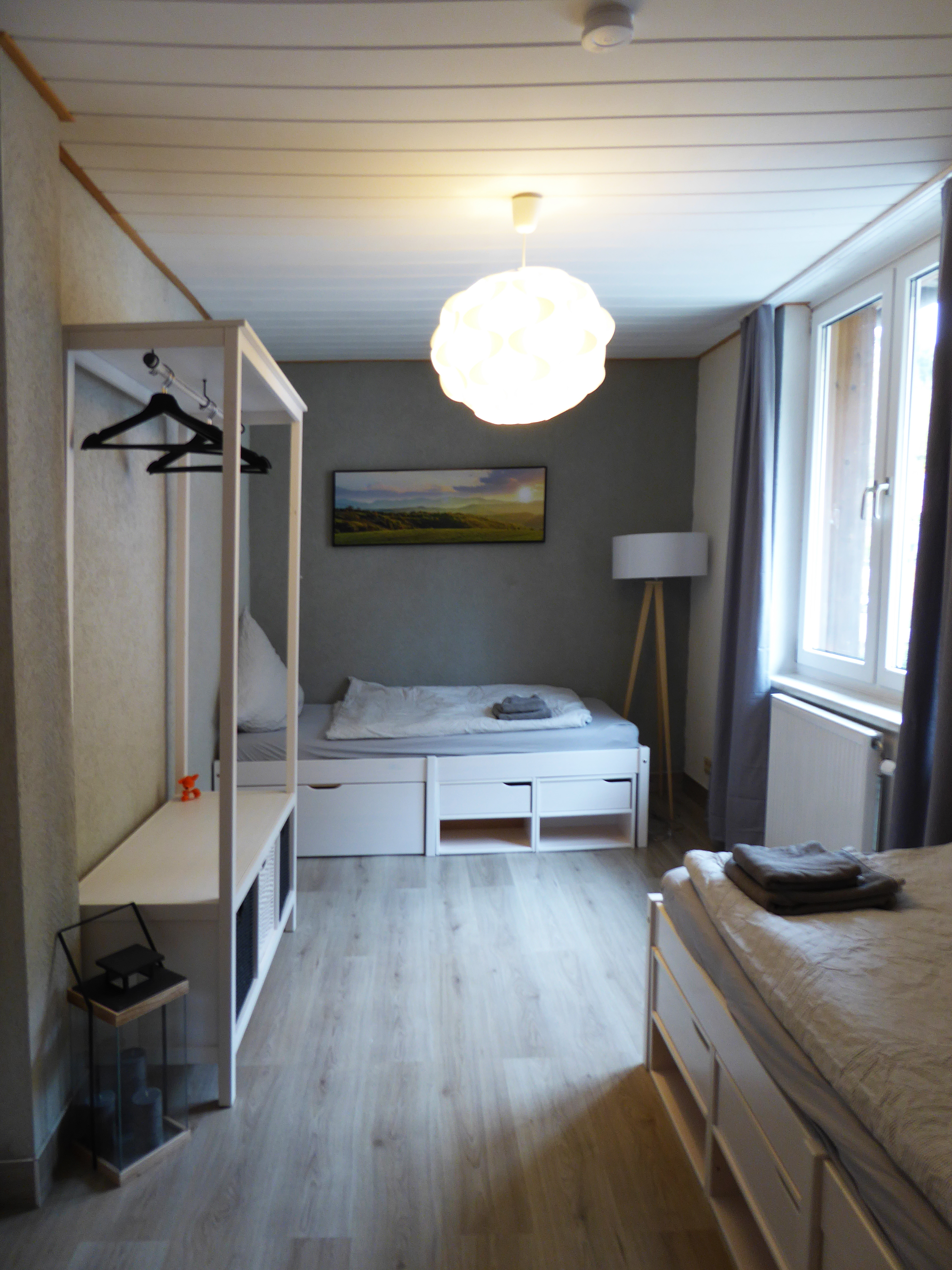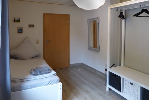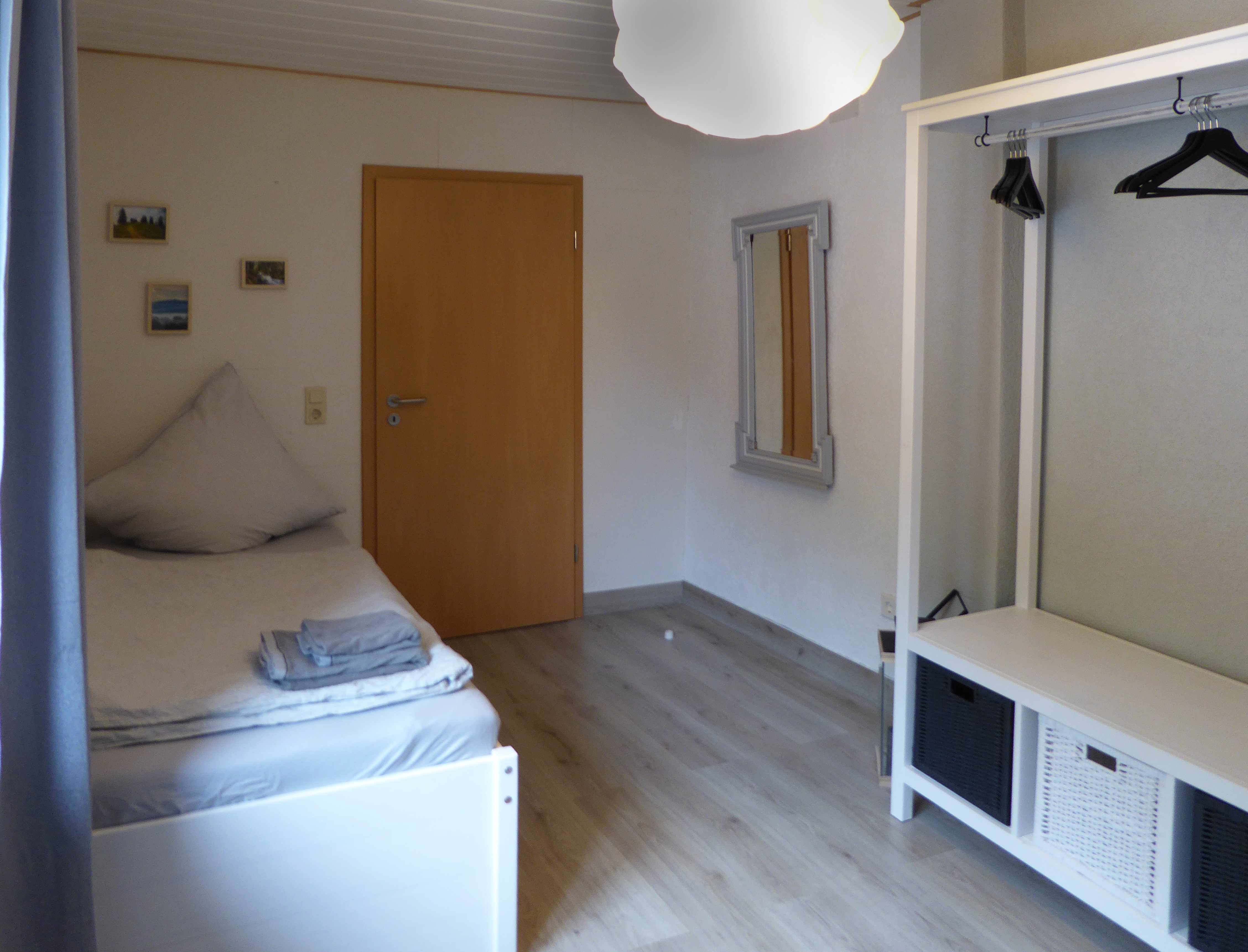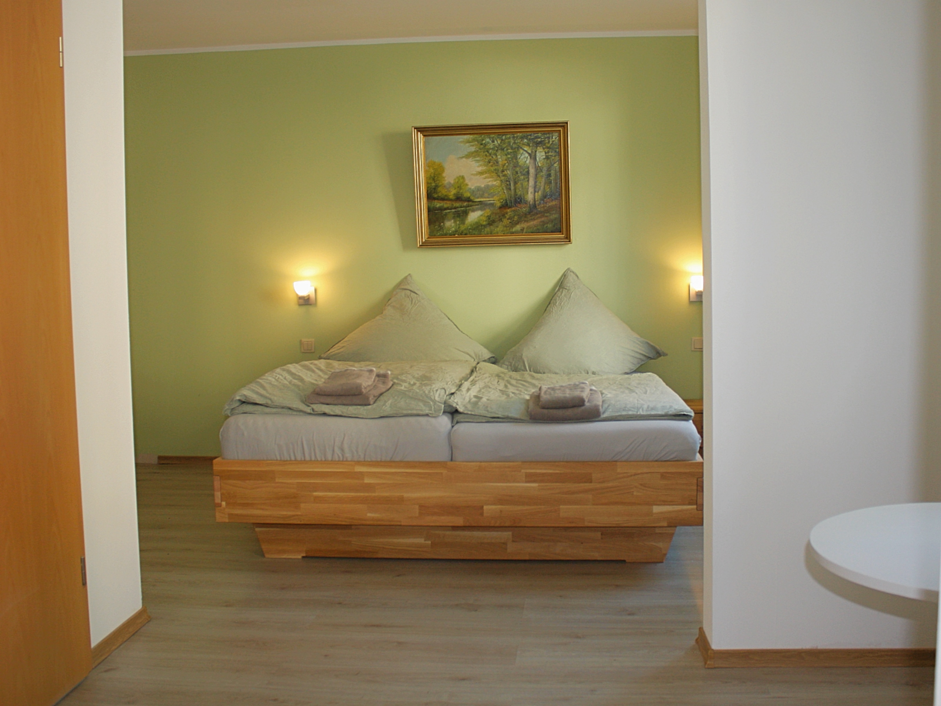 Das Schlafzimmer im Erdgeschoss bietet Platz für zwei Personen und ist mit seinem direkten Zugang zum großzügigen Badezimmer ein echter Wohlfühlort.