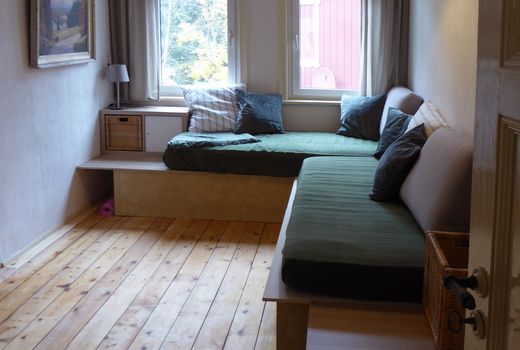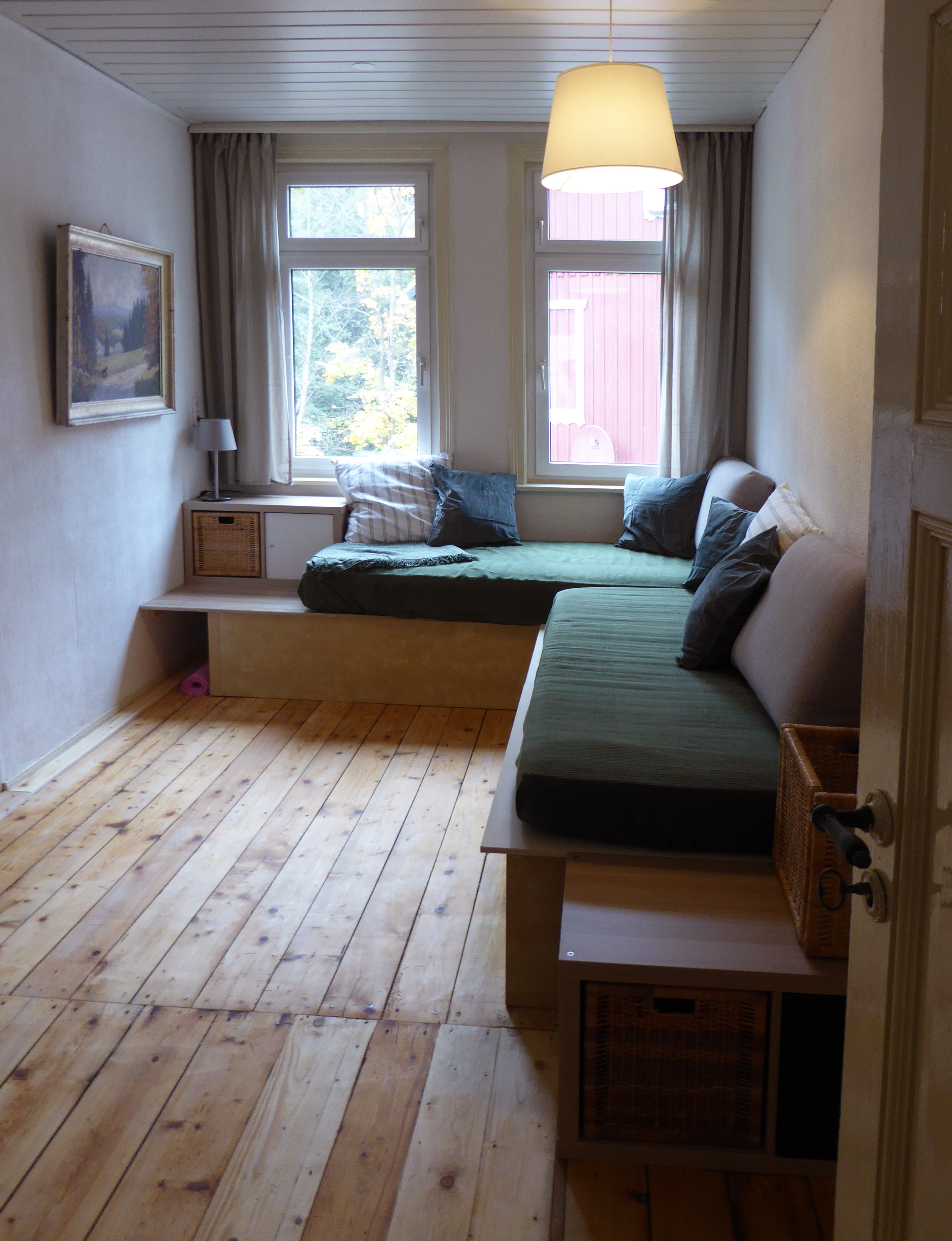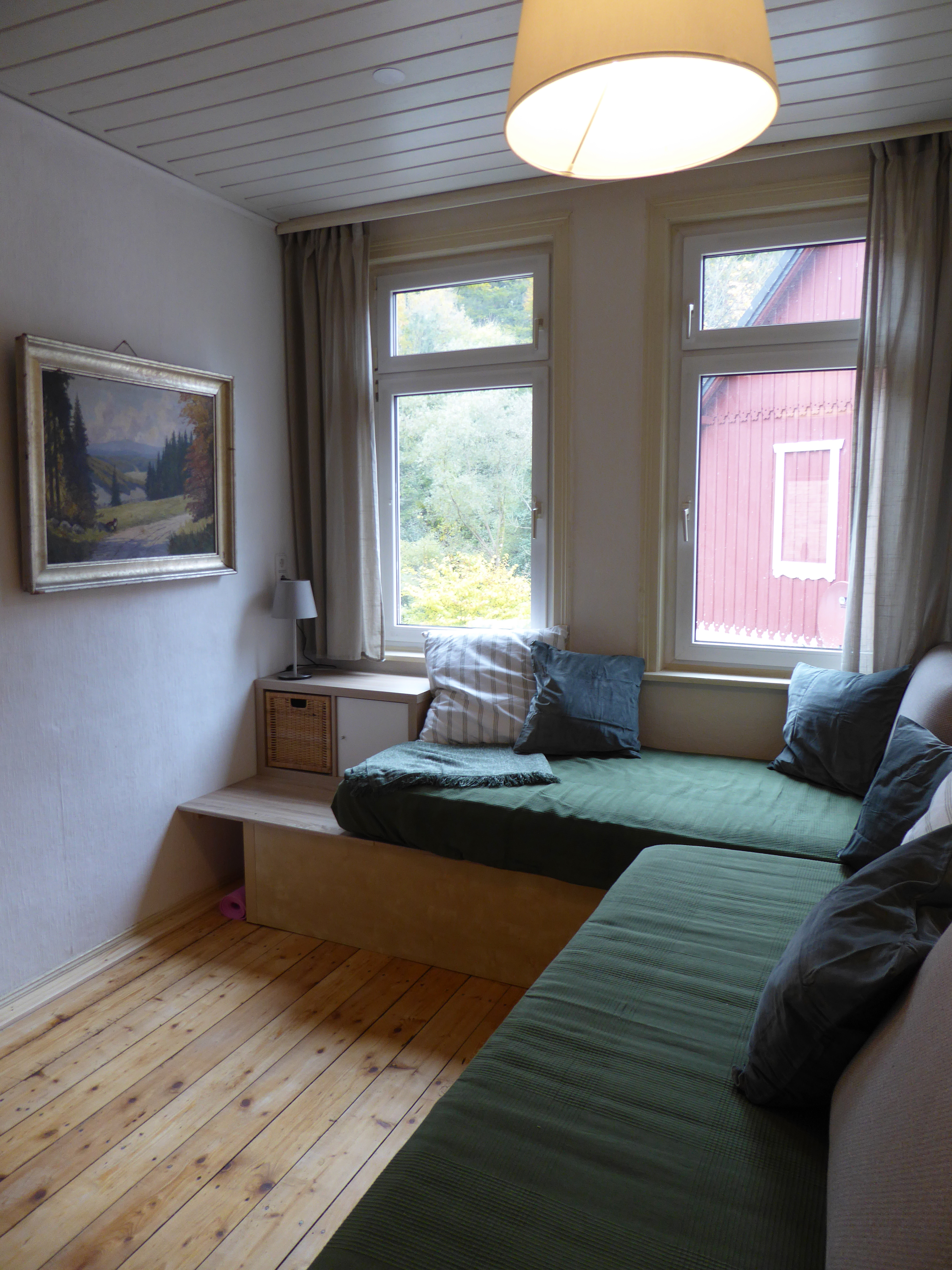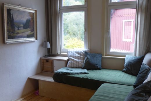 Der Rückzugsraum bietet zwei weitere Betten, die aber auch einfach nur zum Chillen und Tagträumen einladen. Hier finden Sie eine Nintendo-Wii, den Fernseher mit Chromecast aber auch viele moderne Brettspiele und tolle (Vor-)Lesebücher. Für die aktiveren Fuchsfreunde findet sich hier auch eine Yogamatte.